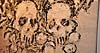 Les deux tableaux de Philippe Lamy (Vanitas aux Pommes ou Intérieur au crâne) proposent une palette réduite pour rendre l’œuvre plus claire permettant de nous représenter tels que nous sommes… Vanitas Vanitatum!