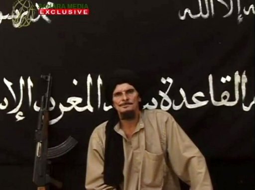 Vêtu d'une tunique beige, d'un turban noir, portant une moustache et un bouc, Gilles Le Guen était apparu devant un fond noir portant le sigle d'Aqmi, un fusil-mitrailleur posé à ses côtés.