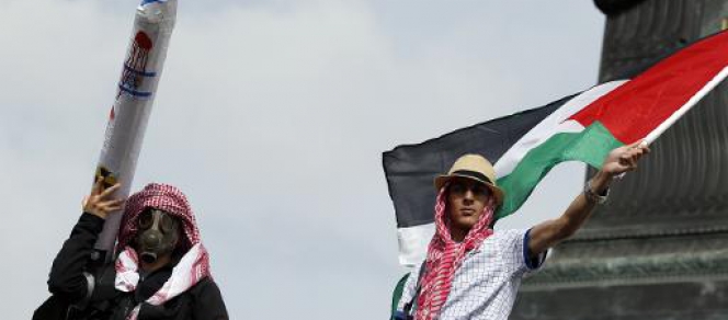 Dans le calme, la foule, très jeune et féminine, a scandé des slogans comme: "Nous sommes tous des Palestiniens!", "Israël assassin!" ou "Une seule solution, fin de l'occupation!".