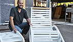Arnaud Kehres (atelier Lagrange a Roquefort les cascades) nous invite à une pause relax dans un rocking-chair en peuplier revisité. «Il en existe plusieurs versions, celui-ci est dédié à l’extérieur, c’est le modèle AK 66».