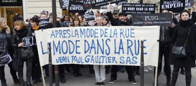 Aux cris de "Gaultier bradé", une quarantaine de salariés de la société Jean Paul Gaultier ont manifesté jeudi à Paris contre un projet de réorganisation de la maison de mode.