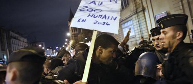 Rassemblement contre l'exposition anti-coloniale "Exhibit B" à Paris