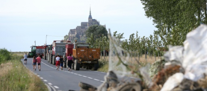 Quelque 400 agriculteurs, selon les gendarmes et un éleveur sur place, ont bloqué avec des tracteurs lundi après-midi les routes menant au parking du Mont, laissant toutefois repartir les visiteurs. Une action "symbolique, pacifique, pour que les prix remontent" et faire comprendre au ministre de l'Agriculture que "la pression agricole ne va pas céder", a indiqué Jean-Baptiste Mainsard, un manifestant.