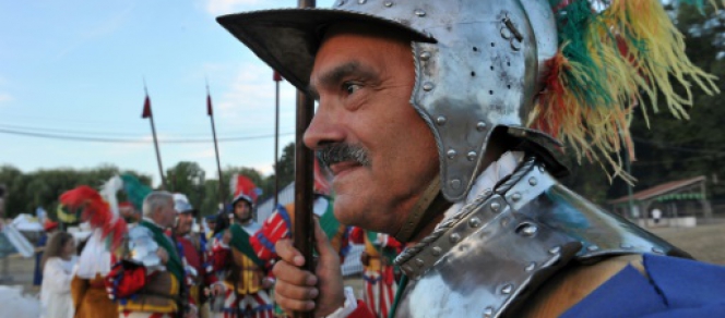 Les gardes de François Ier, chapeau à plumet sur la tête, engoncés dans des pourpoints de cuir, tambour de guerre ou arquebuse en main, s'apprêtent à faire leur entrée pour la reconstitution de la plus connue des batailles pour les écoliers de jadis: Marignan, 1515.