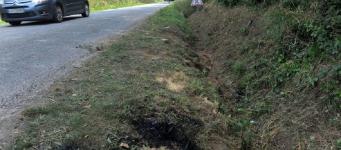 Le Berlingo était en train d'arriver à Rohan. A cet endroit, la route est en ligne droite et s'apparente à un faux plat. Selon les traces repérées par les journalistes de l'AFP sur place, le véhicule semble avoir traversé la route pour finir dans le fossé de l'autre côté, après avoir raclé le talus. Au sol, des flèches jaunes laissées par les enquêteurs indiquent le trajet du véhicule.