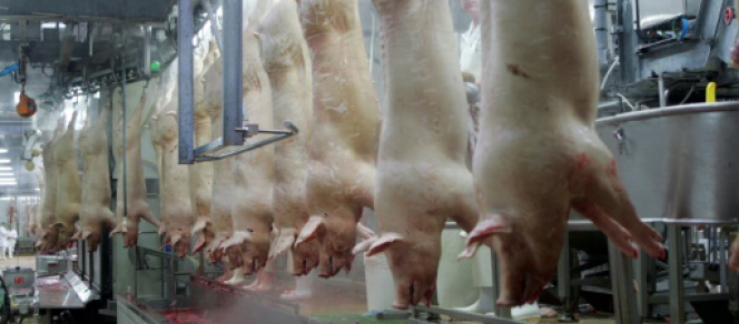 Depuis lundi, les deux principaux acteurs de l'abattage de porcs, Bigard et la Cooperl, ont suspendu leurs achats au marché au cadran de Plérin jugeant que le prix convenu au sein de la filière de 1,40 euro/kilo était intenable pour les abattoirs, comparé aux prix pratiqués en Allemagne ou en Espagne.