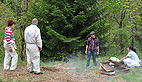 En guise d’exutoire collectif ou comme pour exorciser un passé douloureux, c’est en présence de ses deux stagiaires et d’un ami apiculteur qu’elle brûle les cadres de ses anciennes ruches.
