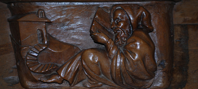Ces stalles achetées par la paroisse au XIXe siècle furent sculptées pour la basilique Saint-Sernin de Toulouse en 1670. Elles rappellent l’exotisme baroque où corbeilles de fleurs et guirlandes de fruits évoquent les jardins d’Éden. L’une des miséricordes – sorte de siège basculant – présente un moine lisant auprès de sa chapelle.
