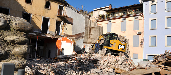 Depuis le début de la semaine, d’importants travaux de démolition ont débuté rue Bayle visant à faire tomber un îlot devenu insalubre au cœur du centre-ville de Foix.