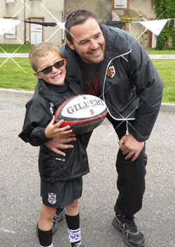 Trois Grands, du club phare de la région, le stade Toulousain, sont venus à la rencontre de ces jeunes pousses. Parmi un public nombreux, on pouvait faire dédicacer un livre, un ballon ou poser aux cotés de David Gérard. Le palmarès de ce garçon est plutôt impressionnant: H.CUP 2003/2005, finaliste du championnat de France en 2004, champion de France Pro D2 en 2009 avec le Racing Club de Paris, champion de France en 2011 de fédéral 2 avec Marseille, voilà un homme qui a touché du Bois dans sa carrière! Aujourd’hui, dans le staff du Stade Toulousain, il entraine les féminines de Fonsorbes qui évoluent dans l’élite 2.