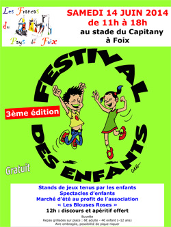 Rendez-vous samedi 14 juin à partir de 11h au Capitany pour le Festival des enfants (en partenariat avec le FAJIP et la ludothèque du pays de Foix).