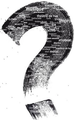 Des points «?» marqués au sol permettront à tous les musiciens qui le souhaitent de s'installer et de jouer! Ces points sont à chercher un peu partout en ville... Pour limiter par ailleurs, la consommation excessive de papiers, un QR code à flasher avec son smartphone sur le document générique donnera tous détails supplémentaires sur les éléments de la programmation.