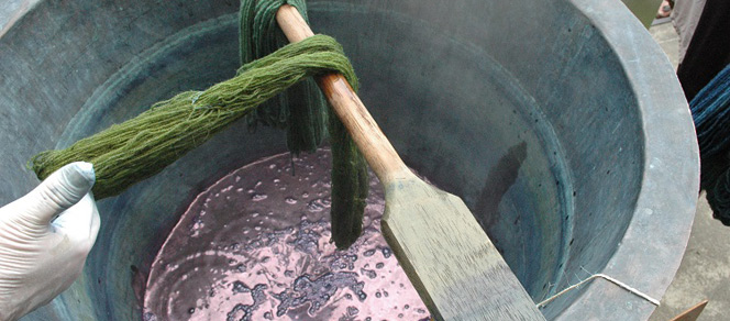 Des initiés soulignant leur plaisir «de voir que la véritable teinture se perpétue» Aidé par ses complices de l'AMTPC, Michel Centenero a durant toute la journée de samedi teint «un échantillonnage de tous acabits: alpage, fibres animales, fibres végétales, tissus en laine, soie ou coton», il y en a eu pour tous les gouts et toutes les couleurs.