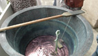 Aux manettes, Michel Centenero, président. D'Arignac, d'Ax les Thermes, de Cazals des Bayles ou de Limoux, des initiés, des passionnés «intéressés par la magie du pastel et de l'indigo», s'étaient donnés rendez-vous devant le chaudron en cuivre de Michel.