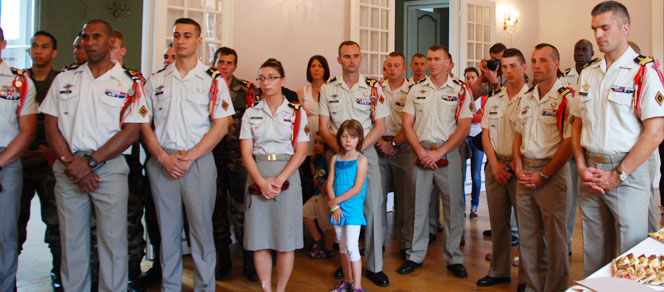 En l’absence du colonel Helluy, chef de corps du 1er RCP, c’est le lieutenant colonel Mercury, commandant en second qui a accompagné les nouveaux arrivants du 1er RCP à la réception organisée en Mairie comme il est de coutume depuis plusieurs années maintenant. Et c’est le Maire, André Trigano qui les a reçus, aux côtés d’élus.