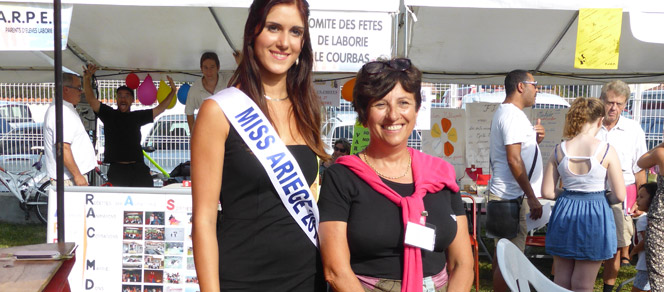 La plus ravissante des varilhoises est venue soutenir toutes ses actions associatives durant cette après-midi, la rayonnante Marine Séguéla, sacrée Miss Ariège 2014, il y a quelques semaines, âgée de 20 ans. Marine représentera l’Ariège et aussi sa ville Varilhes, au mois d’octobre prochain pour décrocher le titre de Miss Midi-Pyrénées.