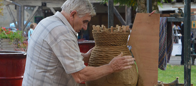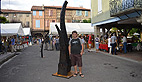 Découvrir nombre d’artistes talentueux, dont les sculptures métal de Joël Oulié (meilleur artisan de France) utilisant les outils de la forge pour créer des pièces en rupture totale avec la ferronnerie traditionnelle ou les sculptures bois de Daniel Haran et leur expression poétique, le regard surréaliste sur notre monde. Juste à côté, la vannerie de Laurence Nautré (Besset) et ses démonstrations de savoir-faire, comme celles de Gilbert Serres (potier à Montastruc-de-Salies) et son tour à la corde.