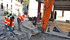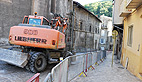 Sur la place des camions, des pelles-araignées et des marteaux-piqueurs attaquent le revêtement de pavés, devenu dangereux pour les piétons avec le temps: «il était urgent d’intervenir sur cette place Saint-Volusien», précise Alain Navarro adjoint au maire en charge des travaux à la mairie de Foix.