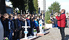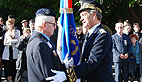 Toujours avec autant de ferveur, la cohorte s’est déplacée du cimetière St Jean au monument aux morts situé rue Frédéric Soulié, précédé par la musique de Pamiers. Le sous-préfet a prononcé l’allocution du secrétaire d’État auprès du ministre de la Défense et des anciens Combattants, Kader Arif, et remis la médaille à Yves Doumenc, porte-drapeau depuis 13 ans, les enfants ont entonné à nouveau la Marseillaise et les élus et représentants du monde des anciens combattants ont déposé les traditionnelles gerbes au pied du monument bordé de chrysanthèmes jaunes et violets.