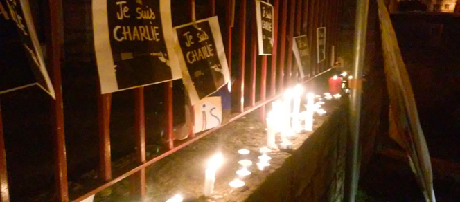 Il fait froid sur les rives du Salat et des petits groupes se parlent, échangent, à certains moments quelques-uns se regroupent à d’autres, animés par le besoin de constater cette antinomie ; depuis hier une petite partie de nous s’est envolée avec Charlie, mais Charlie qui a été exécuté au nom du Tout-Puissant pour quelques coups de crayons impertinents a bercé nos idéaux, façonné nos valeurs pour les plus âgés d’entre nous, et laissera son empreinte pour très longtemps.