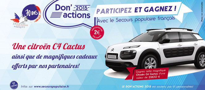 Plus de 60 personnalités venant du monde de la chanson, du cinéma, du théâtre, du sport, de la télévision… se mobilisent pour la solidarité. De nombreux lots sont à gagner. Au niveau national le 1er prix est une Citroën C4 Cactus.