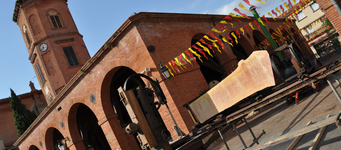 C’est l’entreprise Mascagne venue spécialement du Tarn-et-Garonne avec cet engin improbable qui a fait pendant deux jours des démonstrations sidérantes: nous sommes à cette époque en pleine révolution industrielle et le génie de l’homme a remplacé la traction animale par un système de ruban sur poulie actionnant une scie capable de scier au diamètre voulu (grâce à un ingénieux système de calibrage).