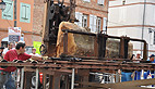 Sur la place de l’église de curieuses machines venues d’un autre temps en démonstration, la plus ancienne date des années 1830 et la plupart de l’entre-deux-guerres. Certaines fonctionnaient encore il y a une cinquantaine d’années sur les exploitations agricoles en basse Ariège.