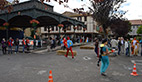 Les établissements situés sur la place leur remettent, qui des verres pleins, qui une carafe, comme pour un service client. Les temps sont chronométrés et des pénalités sont appliquées pour les verres à moitié vides ou à moitié pleins.