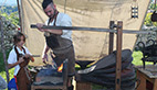Sur l’une des terrasses, différentes échoppes présentaient des artisans utilisant les méthodes et le matériel de l’époque pour forger clous et plaques d’armure, fabriquer des bougies avec patience et minutie. Le bardelier initiait à l’art du couvrage des toits.