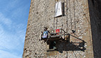 Depuis le moyen âge les techniques de construction ont bien évolué, mais l’échafaudage a perduré. Aujourd’hui en métaux légers, il était à l’époque en bois comme celui qui était adossé à la tour de l’Arget. Du côté de la tour carrée, un autre type de structure était présentée au public, un «échafaudage volant» et sa grande roue permettant de hisser une nacelle le long des murs.