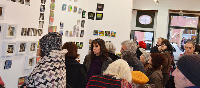 Les amateurs d'art étaient nombreux samedi 8 décembre au vernissage de la nouvelle exposition organisée par la Rue des Arts et intitulée «Cent centimètres carrés»