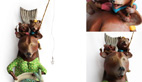 Détournant des objets du quotidien, souvent de la vaisselle, elle y modèle en pâte à bois des animaux en habits du dimanche qui prennent la pause. Un joyeux bestiaire: à chacun son histoire courte, ludique et profondément poétique.