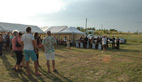Peu après, place aux orages, à la grêle... Mais bien installés sous des tentes, à l'abri de la pluie, les participants ont pu profiter des grillades servies par des jeunes trempés, mais heureux, pendant que Roland Sanchez, maire, et d'autres courageux arrimaient les tentes... ambiance garantie, d'autant qu'un peu plus tard, après avoir monté en urgence une scène sous abri, «Les Cherrys Blossom» (groupe de Verniolle) ont mis le «feu à la soirée»