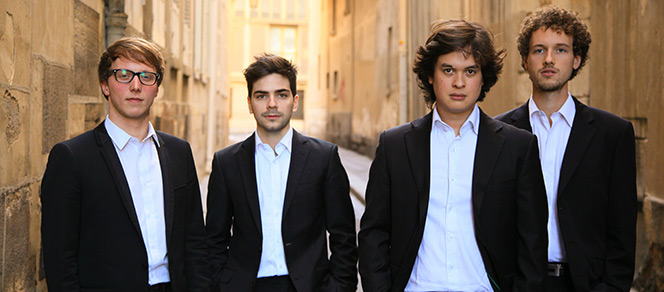 Fondé à Paris en 2012, le Quatuor Van Kuijk n’a pas attendu le nombre des années pour se produire sur les scènes les plus exigeantes en matière de quatuor. Il compte déjà parmi les invités des Festivals de Verbier, Heidelberg, Aix-en-Provence, Stavanger ou du Wigmore Hall de Londres où il a gagné, en mars dernier, le premier prix d’un concours de quatuors parmi les plus redoutés, ainsi que les prix spéciaux Haydn et Beethoven…