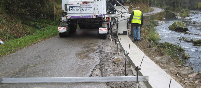Afin de limiter la durée de la gêne occasionnée aux usagers, le Conseil général a choisi de mettre en œuvre un dispositif en béton coulé sur place. Ce choix permet de réaliser les travaux en quelques jours au lieu de plusieurs semaines pour d'autres dispositifs (parapets maçonnés ou glissières posées sur semelle béton).