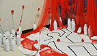 Derrière ce titre presque poétique « 148 fleurs pour 148 femmes », c’est le nombre de femmes tués par leurs conjoints en 2012, soit une femme tous les deux jours et demi. Pour les filles de Regards de Femmes cette installation teintée de rouge et blanc doit inciter le public qui fréquente le mercredi la MJC à se sentir concerné, peut-être même oser mettre des mots sur des actes, car en parler c’est aussi déculpabiliser.