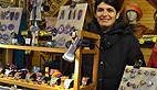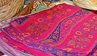 Parmi les commerçants installés dans ces petits chalets de bois, cette dame qui recycle les saris indiens (notamment les saris de mariage qui mesurent de 4 à 7 m de long) et leur donne une seconde vie : «On peut faire plein de choses : des foulards, des peignoirs ou des paravents. Je travaille en direct avec un artisan sur place et je me rends plusieurs fois par an là-bas !»
