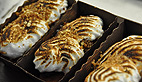 Si bien qu’en boutique il n’y a que des croustades ou des biscuits maison (tresses, chaussons…) dont le fameux Mas d’Azilien, un biscuit à la cuillère et une meringue parfumée à l’alcool de figue fait maison, des morceaux de figues confites, le tout flambé au chalumeau»
