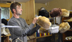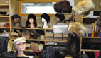 La spécialité de l’atelier: «le travail de la peau de mouton et d’agneau, la peau lainée, à partir desquelles je fabrique des toques, des casquettes, des chapkas, des semelles, des moufles et bien sûr l’indémodable chausson en laine»
