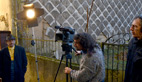 Inlassablement la petite équipe joue le jeu, les acteurs reprennent leurs marques, cherchent la concentration dans le froid glacial, les accessoiristes remettent tout en place, caméraman et perchiste se règlent à nouveau… la magie du cinéma, avec tous ses impondérables, opère.