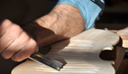 Le geste est plus ou moins large selon l’épaisseur qu’il veut atteindre (Sylvain la vérifie à l’aide d’un palmer). «Je choisis le bois pièce par pièce selon sa densité, la régularité de sa croissance, son esthétique… je travaille au dixième de millimètre près» précise le luthier.