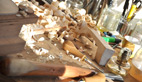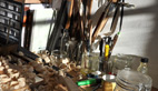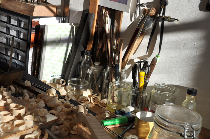 Et puis ce sont les vernis à partir d’huile de lin et de résine. Tel un alchimiste, Sylvain réalise lui-même ses décoctions à partir de pigments naturels: «il y a beaucoup d’empirisme et d’expérimentation mais le vernis donne un aspect soyeux et brillant aux instruments»