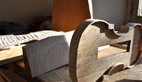 Des codes transmis de génération en générationSylvain privilégie le travail de l’érable sycomore venu des Balkans, réputé pour la dureté de son bois et l’épicéa provenant de l’arc alpin. Il les travaille comme au XVIIe siècle en creusant dans la masse, à la gouge ou au rabot.