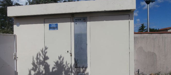«Ce chantier a été réalisé en trois jours. La reconstitution de la partie abimée du poste est faite avec du mortier de résine polyester. Le revêtement final confectionné avec de la résine de finition redonne au transformateur son aspect initial.