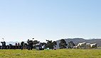 Ce matin dès potron-minet les équipes de Shine Production ont installé une cuisine en plein champ sur les hauteurs de la ferme du domaine de la Besse à Camon.