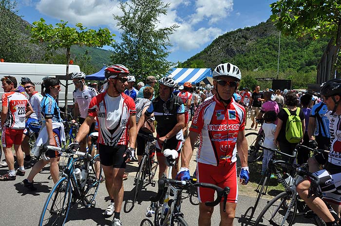 Parmi les rencontres sur la ligne de départ, Patrice venu spécialement de l'Ile Dieu en Vendée pour découvrir le département, cette équipe de Sud Vélo de Montpellier reconnaissable avec le logo «ne jetez plus vos déchets», un cyclo de Lourdes qui essaie de venir tous les ans, l'Ariégeois Christian Eychenne, à peine le Paris Bayonne achevé, enchaîne sur cette épreuve: «la fête de l'Ariégeoise ça ne se manque pas, c'est pour moi la 15ème et cette année j'arbore le maillot du Rotary International pour sensibiliser les gens pour la lutte contre la polio»