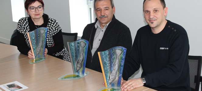 Le magnifique trophée, dans ses versions or, argent et bronze, qui sera remis aux 3 premiers du podium, a été réalisé par Marc Kniebihler verrier à Brassac.