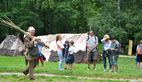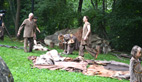 «On a un scénario sur les cinq jours, poursuit le responsable du service médiation Emmanuel Demoulin. Aujourd'hui c'est l'arrivée de la grande migration. Le clan en entier va arriver à travers le parc avec tout son paquetage, on va s'installer sur le camp, monter les tentes, on va allumer du feu, on va s'installer ici pour la saison pour pouvoir chasser, en toute sérénité»