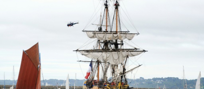 Devant elle, la "Latouche-Tréville", une frégate en acier sortie deux siècles plus tard des arsenaux de la marine, ouvrait la mer, tandis que la "Recouvrance", symbole de Brest et réplique d'une goélette aviso de 1817, fermait élégamment la marche.