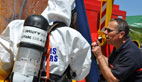 Un exercice visant à éprouver les savoir-faire des sapeurs-pompiersMaxime, du centre de secours de Pamiers distribue les rôles et les missions: mise en place d’une zone d’exclusion, périmètre de sécurité avec sas de décontamination.